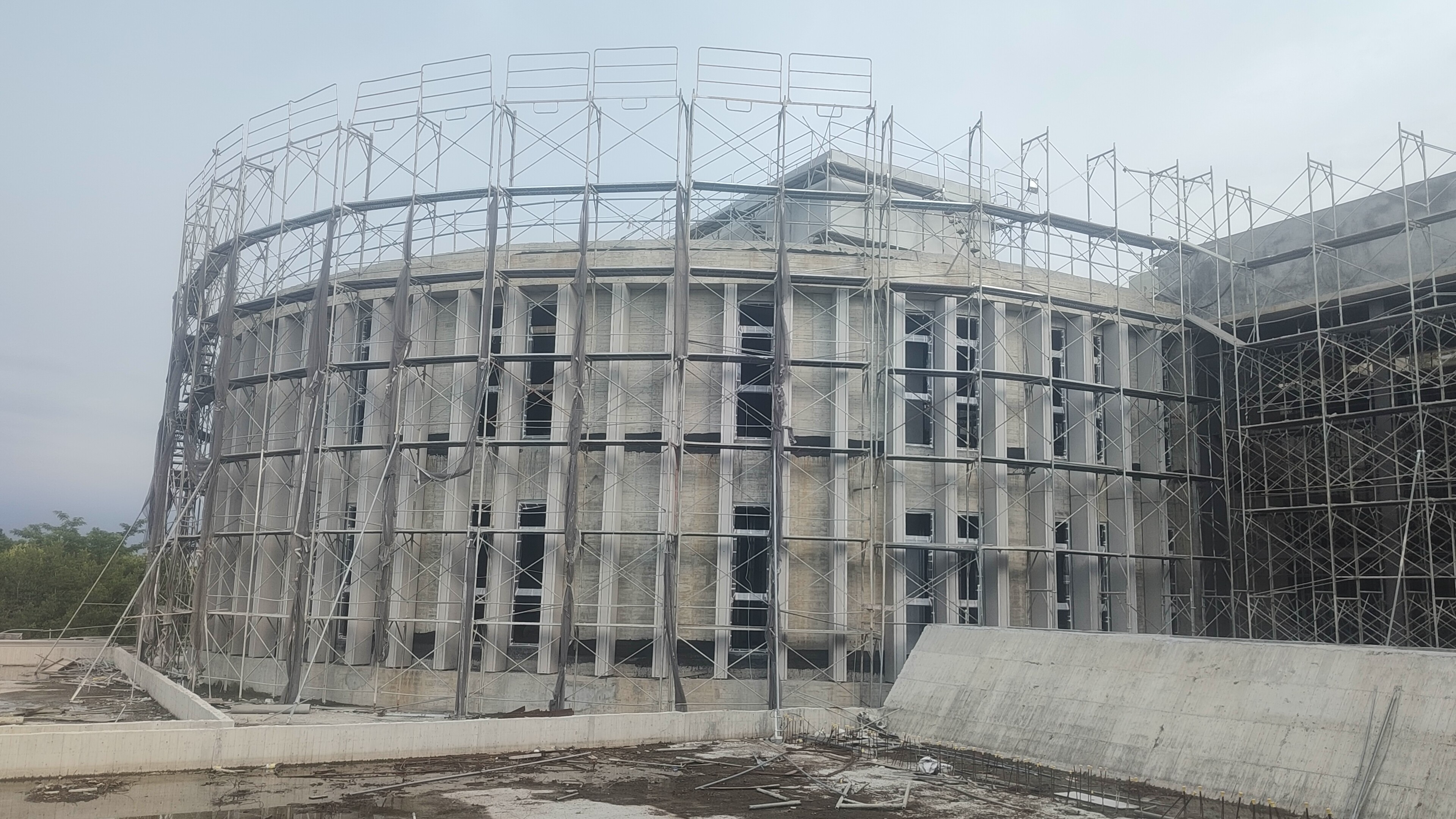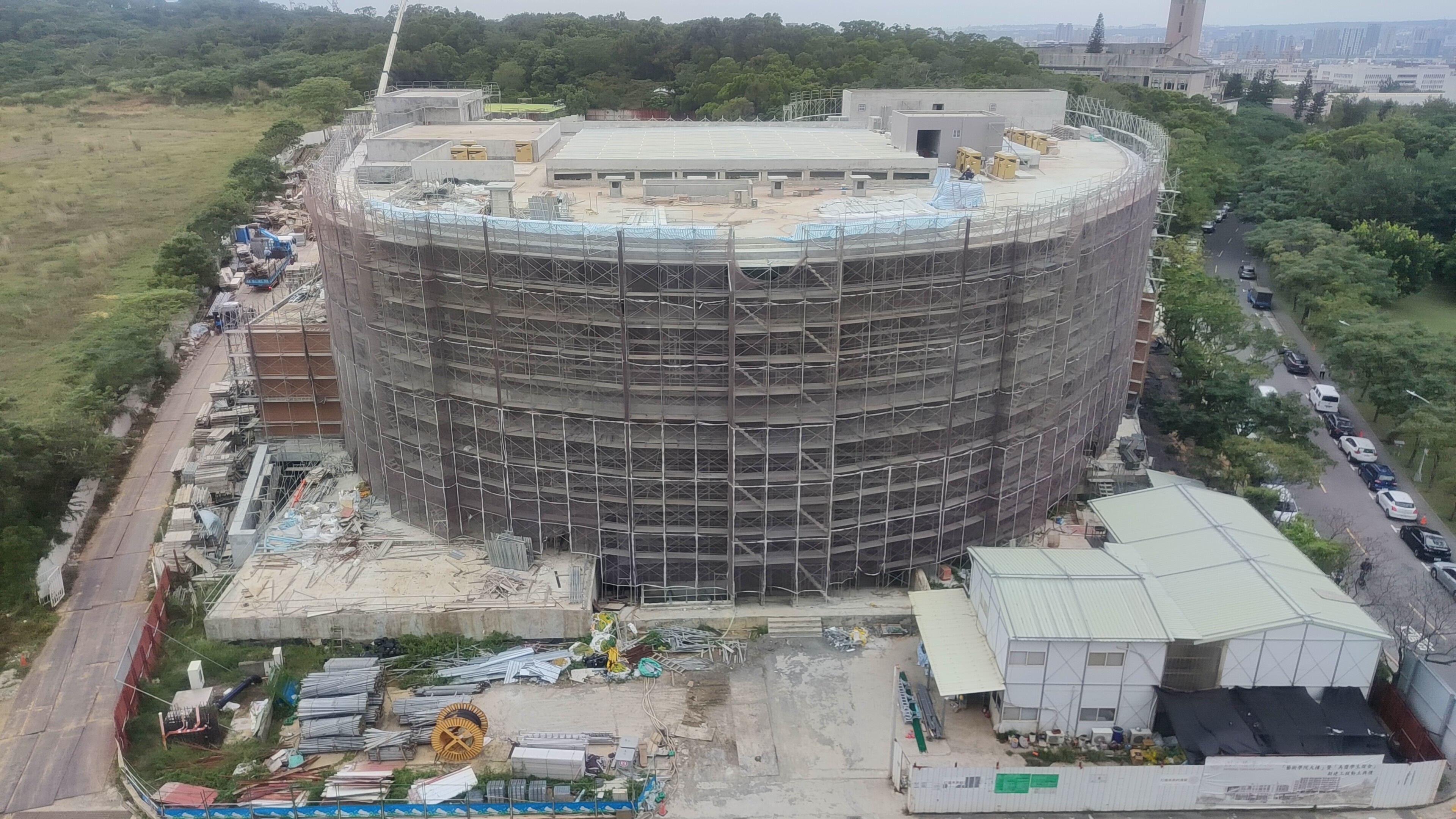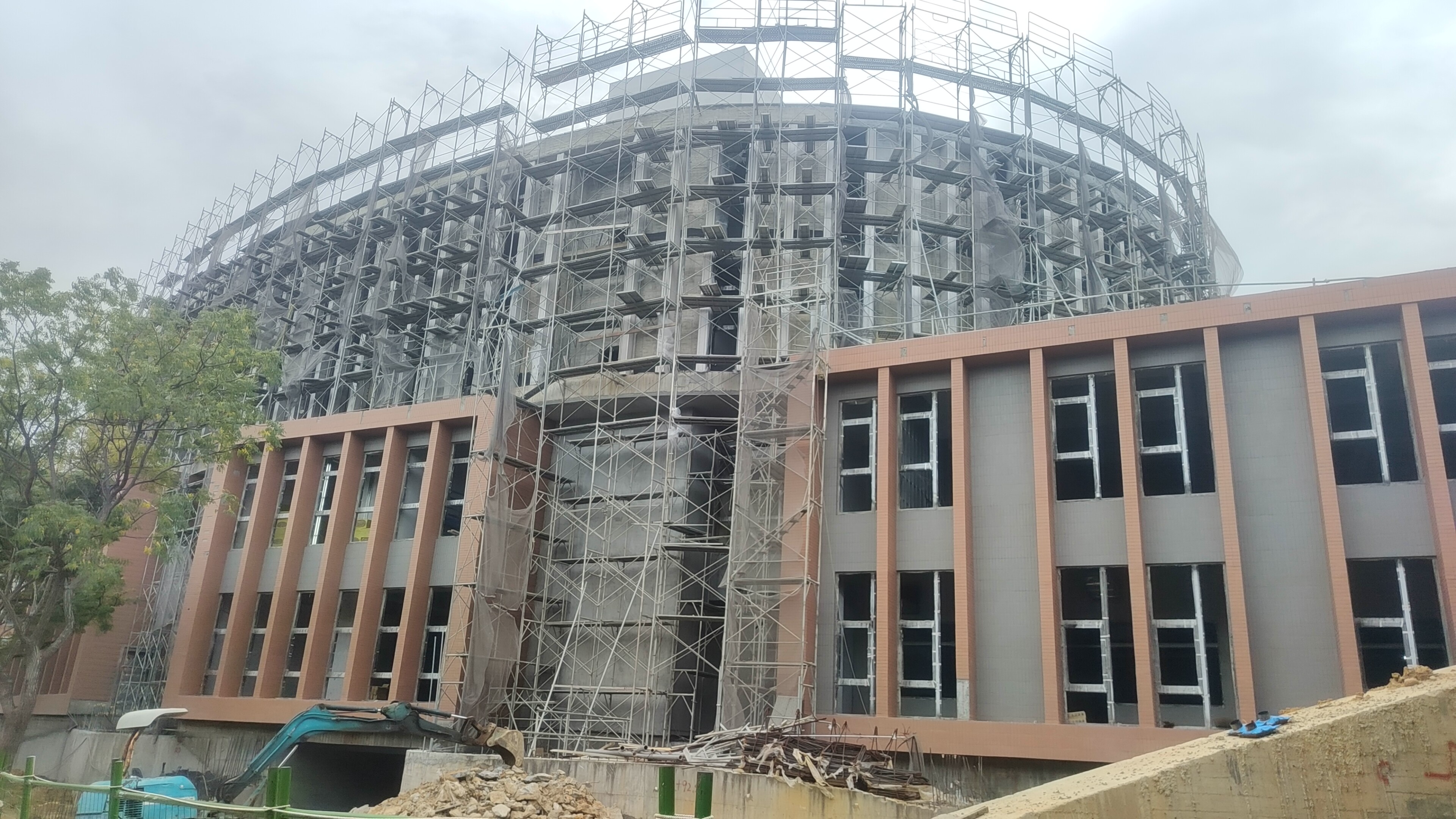 主工程進度:於111年2月14日開工,預計115年1月31日完工,預定進度:84.62% 實際進度:79.81%。(114.10.28止),結構體:鋼構組裝完成,114年6月5日進行頂樓鋼構區混凝土澆置及整體粉光,114年6月27日頂樓女兒牆、設備基座、通風管道混凝土澆置,鋼構重型支撐拆除完成。目前施作:B1樓消防管路拉線,2-3樓輕隔間骨架安裝及單面封版、水電、消防管路拉線、空調冷媒管管路安裝、冷氣機安裝、挑空區天花板骨架安裝、外牆金屬複合板骨架安裝,3-4樓外牆中空版骨架安裝、輕隔間水電配管、天花板冷氣安裝、坪頂天花水泥漆黑白土批土、內牆泥作粉刷,4樓頂版電燈燈盒拉線、輕隔間單面骨架組立及單面封版、樓梯B內牆泥作粉刷,電梯施工、天窗D鋼板安裝、車道景觀工拆模整地及高程整地。