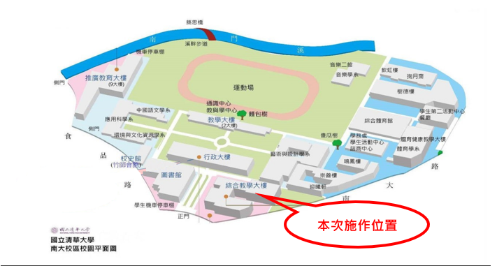二、施工位置:南大校區綜合教育大樓停車棚。
