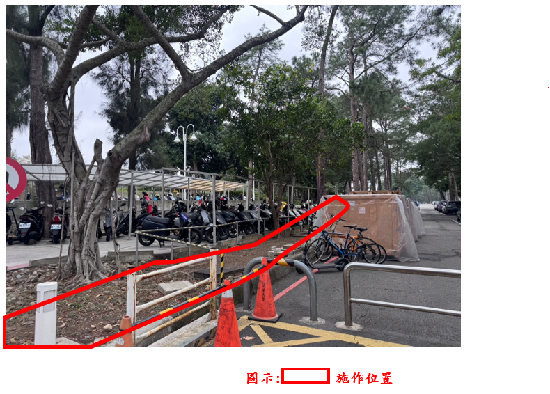 二、施工位置:烤肉區前(工程一館旁)詳附件施作位置。