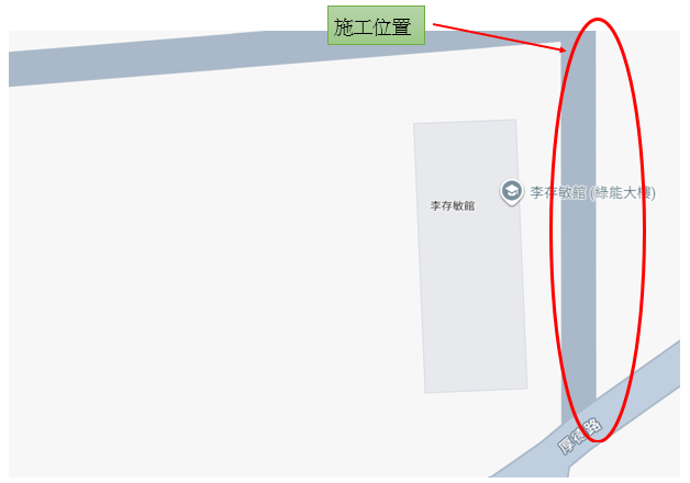 施工位置:綠能大樓前至工科館之間道路(詳見附件施工範圍圖)